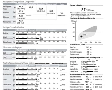Optimise ta santé et ta condition physique grâce à un bilan corporel complet, précis et accessible. Ce service te donne une analyse détaillée de ta composition corporelle, un point de départ essentiel pour progresser efficacement et durablement.